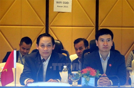 Deputy Foreign Minister Le Hoai Trung (left, the front line) attending the meeting