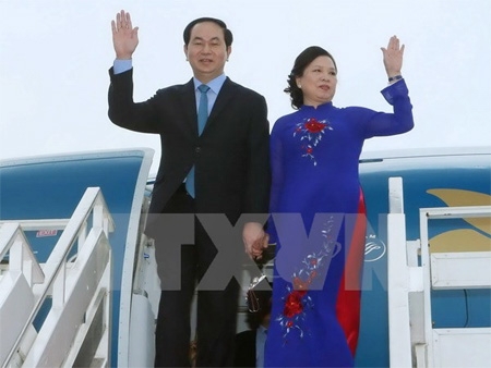 PANO – Vietnamese President Tran Dai Quang and his spouse has today left Hanoi for Brunei to start State-level visits to Brunei Darussalam from August 26 to 28 and Singapore from August 28 to 30, at the invitation of Sultan of Brunei Hassanal Bolkiah and Singaporean President Tony Tan Keng Yam.