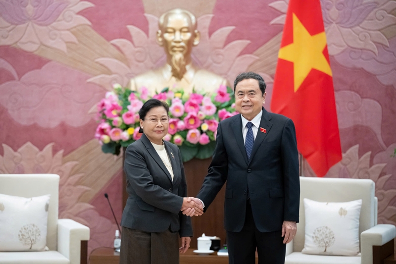 N.A. Chairman Tran Thanh Man and Chief Justice of the Lao Supreme People’s Court Viengthong Siphandon (Photo: quochoi.vn) |