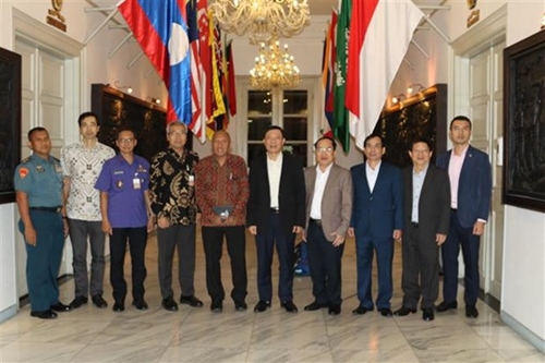 The delegation from Vietnam's Central Theoretical Council in a group photo with representatives of the Indonesian National Resilience Institute (Lemhanas) |