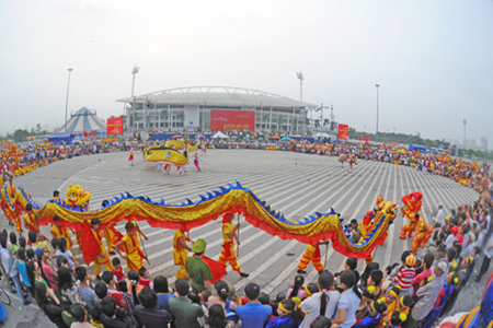 PANO - 29 dragon dancing teams from 29 districts in Hanoi, on October 6th, took part in the third Dragon Dancing Festival 2012, as organized by the Department of Culture, Sports and Tourism of Hanoi, at the My Dinh National Stadium.