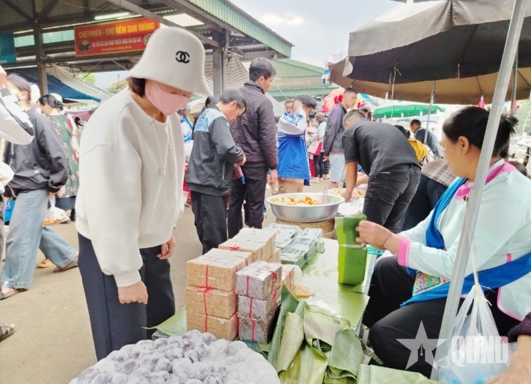 PANO - San Thang market is held regularly on Saturday evenings and Sunday mornings each week in Tan Phong ward, Lai Chau province.