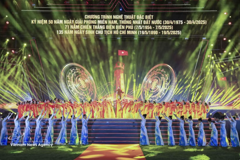 A special art program is held in Dien Bien province in 2025 to celebrate the 50th anniversary of the South Liberation and National Reunification Day, the 71st anniversary of the Dien Bien Phu Victory, and the 135th anniversary of the birth of President Ho Chi Minh. |
