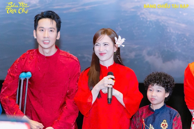 Actors in leading role of “Bau vat troi cho” (Heaven's Gift) exchange with audiences. |
