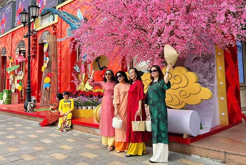 PANO - In recent days, the festive atmosphere welcoming the Lunar New Year (Tet) holiday has spread across major streets in Ho Chi Minh City. At public spaces and shopping centers, vibrant decorative installations have become focal points, attracting residents and visitors to stop, admire, and capture early spring moments.