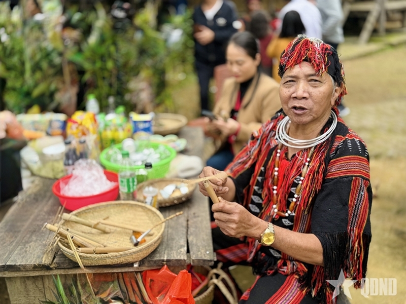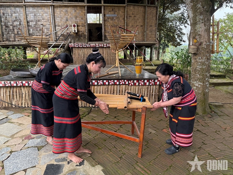 In vibrant traditional attire, the Xo Dang, Co Tu, Ba Na and other ethnic groups recreate the atmosphere of a Central Highlands spring. The sounds of gongs and drums blend with songs of the great forests, forming a vivid cultural tableau within the spring setting of Vietnam National Village for Ethnic Culture and Tourism. |