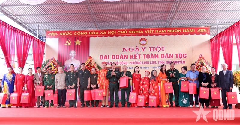 During the festival, the defense leader presented gifts to Dong Residential Area and Linh Son ward. Along with leaders of the Vietnam People’s Army and the Vietnam Fatherland Front, he distributed 100 gift packages to policy families, disadvantaged households, and those affected by storms and floods. Military Region 1, Command 86, and Thai Nguyen province also presented gifts to local households and collectives.
