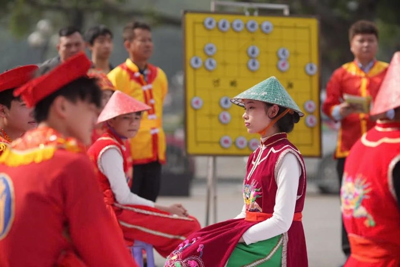 Views from the human chess festival on February 21 at Dong Kinh Nghia Thuc square (Photo: hanoimoi.vn) |