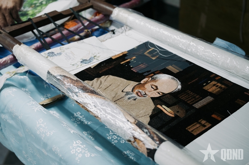 Artisan Nguyen Cao Binh shared that portrait embroidery requires both skillful hands and exceptional creativity to capture the spirit in the eyes and smile. |