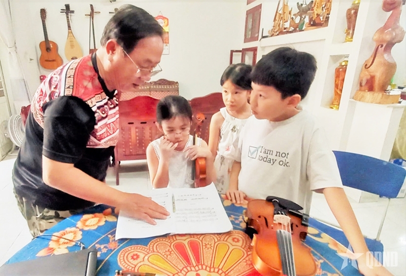 We visited Nguyen Truong’s small house on Ngo Quyen Street on a cool spring morning. At the doorway, violin melodies filled the air as students practiced under his guidance.