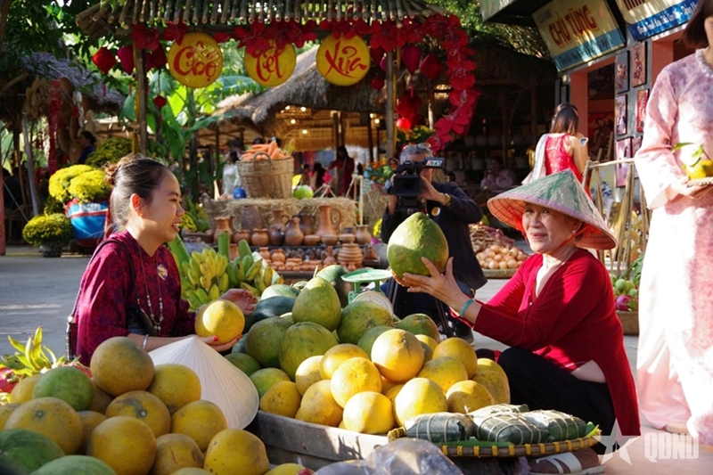 Called “Tet of those days” and themed “Preserving Vietnamese Tet - Shaping the future,” the large-scale event covers three hectares and runs for 45 days. Highlights include solemn traditional rituals such as erecting the Neu (bamboo) pole, seeing off the Kitchen Gods, worshiping craft ancestors, making Chung and Tet cakes, and asking Confucian scholars for calligraphy. Additionally, the vibrant Spring Festival space features folk games (tug-of-war, bamboo dancing) and an “Old Tet Market” with over 50 thatched-roof stalls selling local specialties.