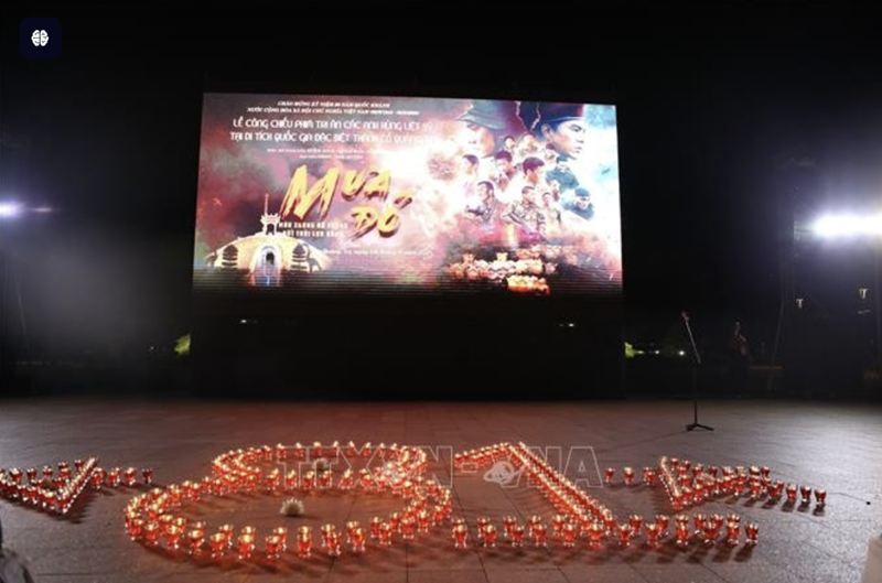The movie "Red Rain" is screened at the Quang Tri Ancient Citadel relic site. |