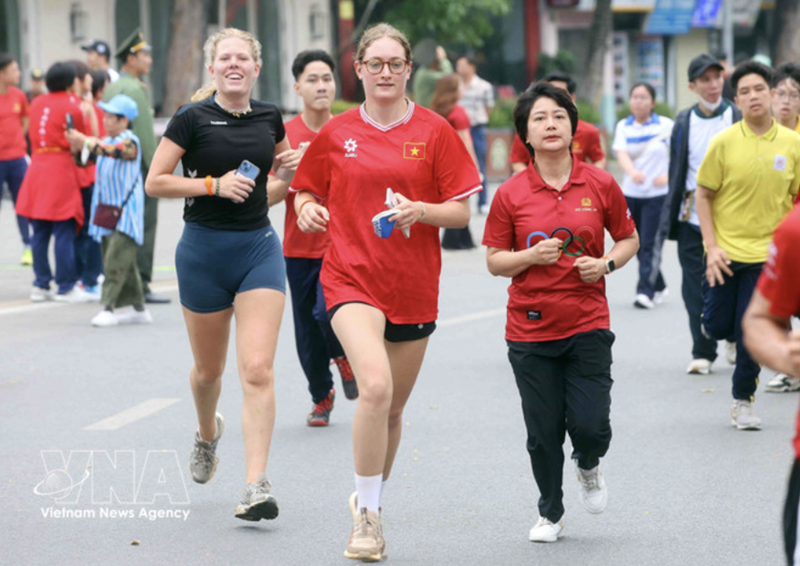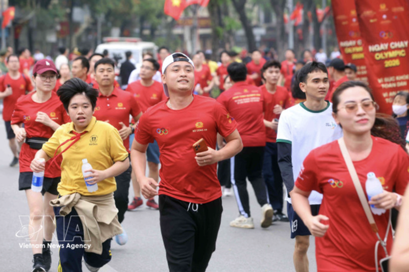 People join the 2026 Olympic Run Day for public health, national security in Hanoi. |