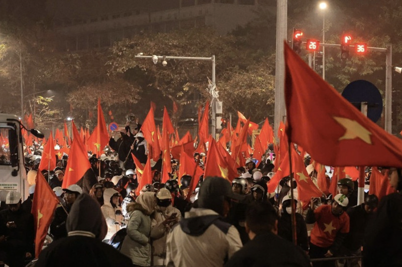 Thousands of people flock to the streets across Hanoi to celebrate the win of Viet Nam's U23 team at the AFC U23 Asian Cup 2026 on early January 24. |