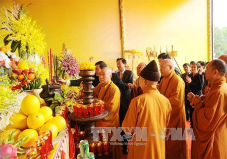 The festival opening also included the hoisting of a 25.5m-long and 20m-wide Buddhist flag, which will fly between the peaks of Chua and Giai Oan mountains.