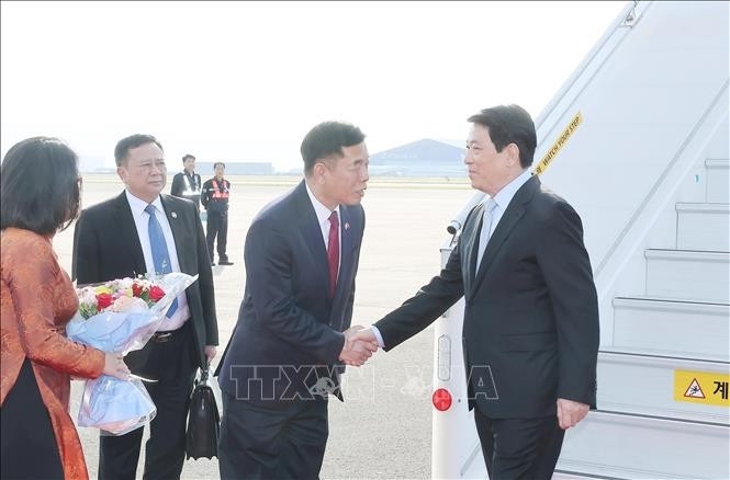 Welcoming the Vietnamese President and the delegation at the Gimhae Air Base were Choi Hyung Chan, President of the National Diplomatic Academy of the RoK, leaders of Busan city, Vietnamese Ambassador to the RoK Vu Ho, Vietnamese Consul General in Busan Doan Phuong Lan, and officials from the Vietnamese Embassy and Consulate General in the RoK.
