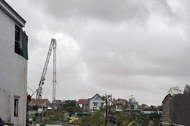 A transmission tower in Hoang Giang commune, Thanh Hoa province broken after Typhoon Bualoi |