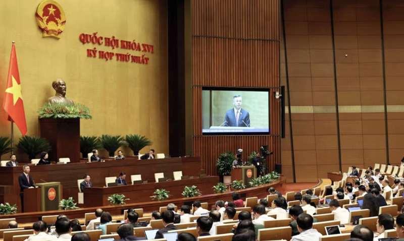 Finance Minister Ngo Van Tuan speaks at the first session of the 16th National Assembly. |