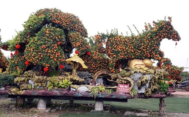 Large-scale artistic creations made from ancient mandarin trees draw attention. |