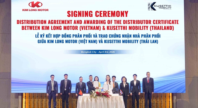 Kim Long Motor has taken a significant step in its international expansion strategy by entering the Thai market through a newly signed distribution agreement with Kijsetthi Mobility.