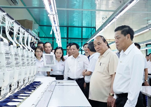 President Nguyen Xuan Phuc (second from right) at the factory |