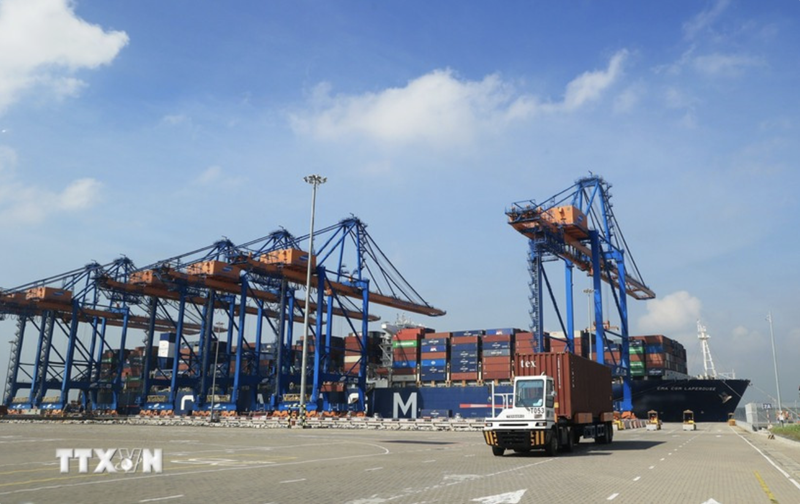 Container trucks operate at the Gemalink International Port in the Cai Mep Seaport Complex in Ho Chi Minh City's Tan Phuoc ward. |
