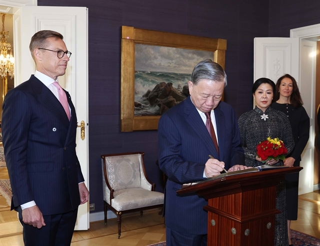 Following the welcome ceremony, President Stubb and his spouse invited General Secretary Lam and his spouse to the signing room, where the Vietnamese leader left a message in the guestbook, expressing his delight at visiting Finland, a nation known for its creativity, cultural richness, and compassion.