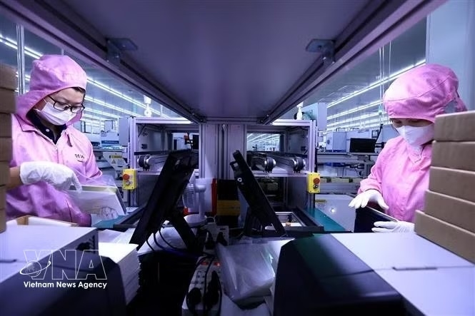 Employees work at Toyo Solar Co., Ltd., a Japanese-invested company in the Cam Khe Industrial Park of Phu Tho province, with a total investment of 200 million USD in 2023. |