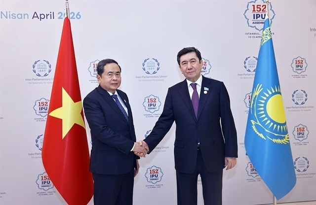 National Assembly Chairman Tran Thanh Man (left) and Speaker of the Mazhilis, the lower house of Kazakhstan’s parliament, Yerlan Koshanov at their meeting in Istanbul on the sideline of IPU-152 on April 16 |