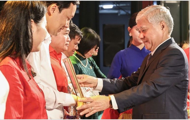 President of Vietnam Fatherland Front Central Committee Do Van Chien hands over certificates of merit to outstanding individuals and collectives of the campaign. (Photo: suckhoedoisong.vn) |