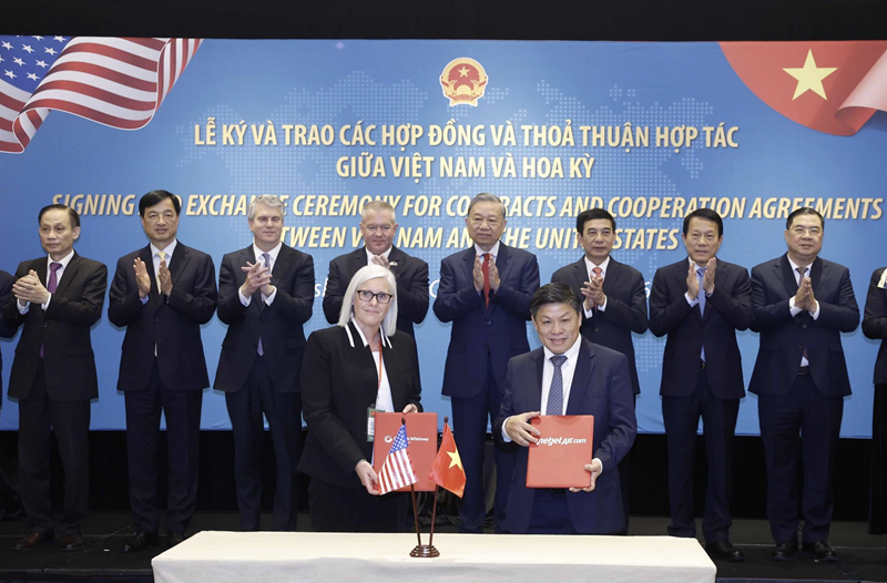 Party General Secretary To Lam witnesses the exchange of the agreement on the purchase of engines and maintenance services between VietjetAir (Vietnam) and Pratt & Whitney (U.S.) for 137 aircraft powered by GTF engines. |