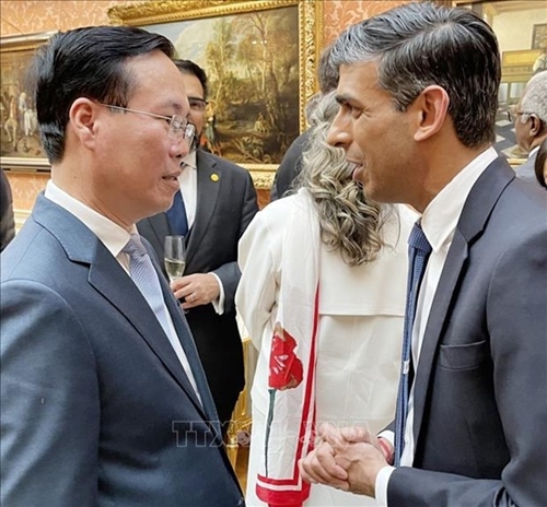 President Vo Van Thuong also met with U.K. Prime Minister Rishi Sunak, during which the PM said that the potential for cooperation between the two countries is huge and wished to expand cooperation with Vietnam in various fields. He thanked Vietnam for supporting the U.K. in the negotiation on the country's participation in the Comprehensive and Progressive Agreement for Trans-Pacific Partnership (CPTPP).