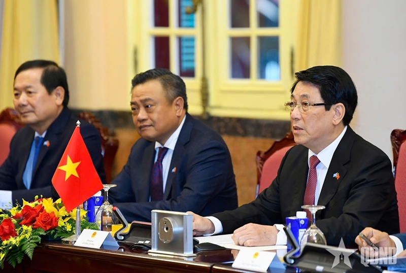 State President Luong Cuong (first from right) at the talks (Photo: qdnd.vn) |