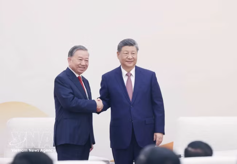 Party General Secretary and President of China Xi Jinping (right) and his Vietnamese counterpart To Lam at the meeting with the two countries’ youth participating in the “Red Study Tour” program |