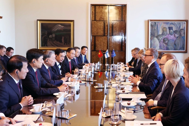 Regarding economy, trade and investment, the Party leader emphasized that Finland is a very potential trading partner of Vietnam in Northern Europe and suggested Finland cooperate and share experiences with Vietnam in building a circular economy; and at the same time, encouraged Finnish enterprises to increase investment in Vietnam, especially in Finland's strong sectors such as maritime cooperation, renewable energy, environment, processing technology.