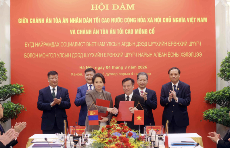 Following the talks, an MoU was signed between the Vietnam Court Academy and the Judicial Training, Research and Information Academy under the Supreme Court of Mongolia.