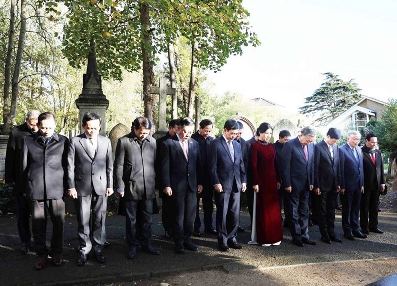 General Secretary of the Communist Party of Vietnam To Lam and his spouse Ngo Phuong Ly, along with a high-ranking Vietnamese delegation, paid tribute to proletariat leader Karl Marx at his grave in Highgate Cemetery in London on October 28, as part of their official visit to the U.K.
