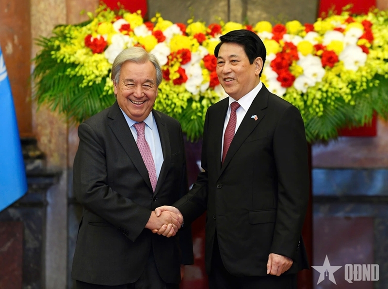 Vietnamese President Luong Cuong (right) and U.N. Secretary-General Antonio Guterres (Photo: qdnd.vn) |