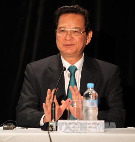 Prime Minister Nguyen Tan Dung at the dialogue with hundreds of Vietnamese and Australian business representatives |