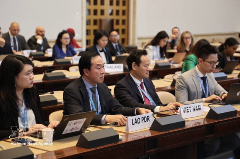 Ambassador Do Hung Viet (center), Permanent Representative of Vietnam to the United Nations, speaks at a consultation in Geneva. |