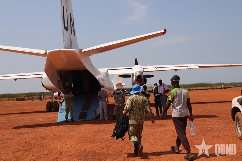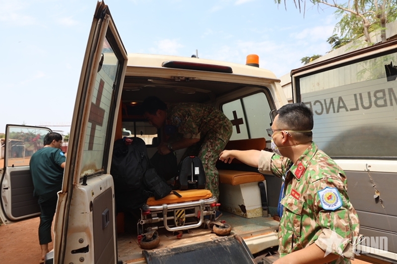 Captain, Doctor Pham Ly Thanh, a member of the hospital’s Air Medical Evacuation Team (AMET), said that to comply with U.N. medical standards and procedures, the assigned personnel promptly activated and implemented the required air evacuation protocols. The patient was admitted the previous afternoon, and the evacuation flight was carried out early the next morning. The AMET team had to prepare throughout the night, completing a series of complex administrative procedures and readiness steps. Preparing the full set of specialized medical equipment, medicines, and essential personal items for such a mission is highly demanding.
