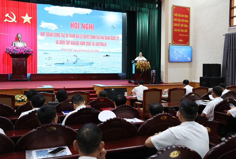 A view of the conference before the voyage of Ship 016-Quang Trung and the delegation at Naval Region 4 on the morning of February 22 |