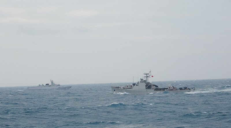 Vessels from both sides maneuver in formation during the patrol. |