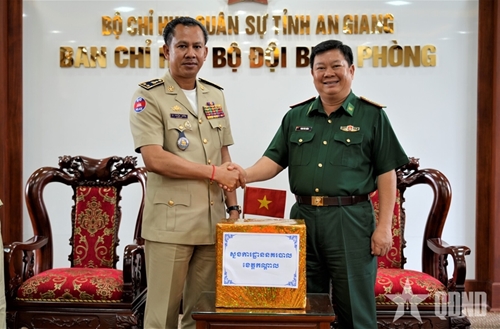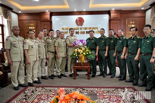 PANO - On the occasion of the recent merger between the border guard forces of An Giang and Kien Giang provinces into the newly-established An Giang Provincial Border Guard Command, a delegation from the Kandal Provincial Police Commissariat of the Kingdom of Cambodia, led by its Director Lieutenant General Chhoeurn Sochet, paid a visit to extend congratulations and present gifts to officers and soldiers of the new command.