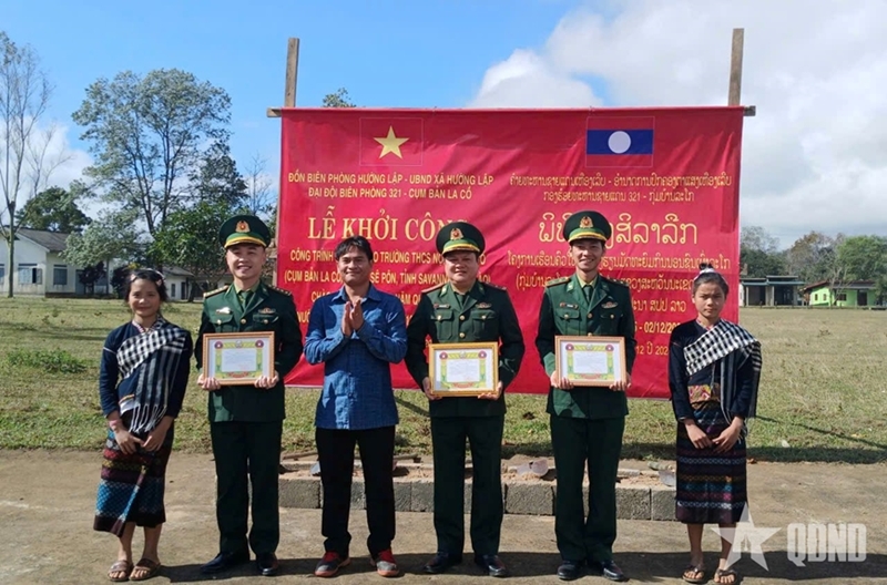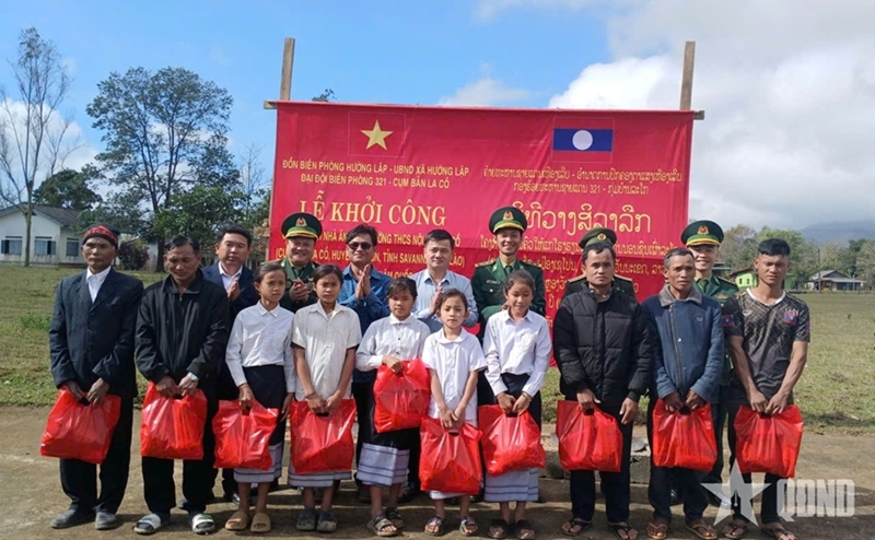 PANO - On December 22, in Avia hamlet, Sepon district, Savannakhet province, Laos, Huong Lap Border Post under the Quang Tri Provincial Border Guard Command coordinated with other forces to organize a groundbreaking ceremony for a gratitude house on Vietnam - Laos border and a semi-boarding cafeteria for Laco Boarding Secondary School.