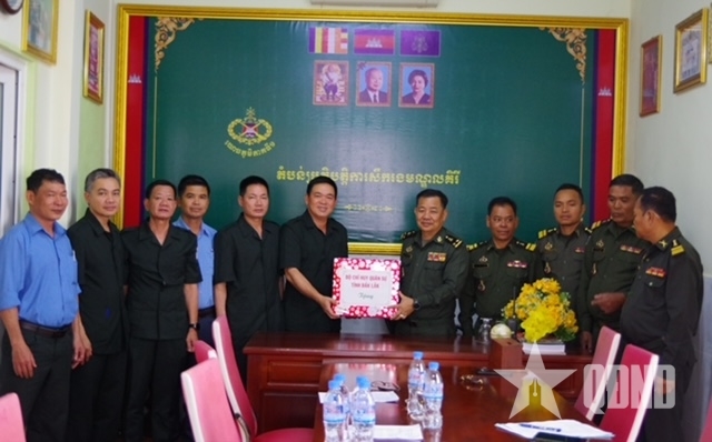The delegation hands over gifts to Mondulkiri’s Military Sub-region. |