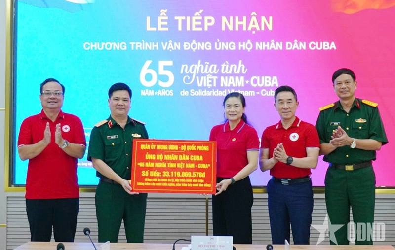 PANO – On October 17, at the headquarters of the Vietnam Red Cross Society (VRCS) Central Committee, under the authorization of the leadership of the Central Military Commission and the Ministry of National Defense, Major General Be Hai Trieu, Chief of the Department of Mass Mobilization, together with a delegation from the General Department of Political Affairs of the Vietnam People’s Army (VPA), handed over more than VND 33.119 billion raised by agencies, units, officers, soldiers, and workers across the military to the VRCS Central Committee when joining the “65 Years of Vietnam-Cuba Solidarity" program.