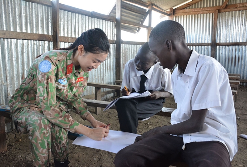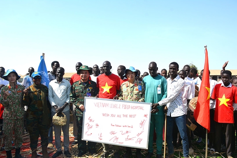 Understanding those hardships, Vietnamese blue-berets always strive to bring brighter colors to this land. Following the staff of the hospital to Liberty Primary School in Bentiu during U.N. CIMIC (civil-military cooperation) activities, I clearly felt the heartfelt care of Uncle Ho’s soldiers for local people.