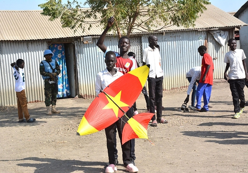 Spring has come to Bentiu, not from nature, but from hearts willing to share. New drawings will continue to be created on white paper. Footballs will keep rolling on dirt fields. Kites will continue to fly in the wind. Cattail-leaf baskets will keep being woven. “Vietnam, very good, very good!” The simple words from teachers and students at Liberty Primary School were enough to warm the hearts of Vietnamese blue-berets on their peacekeeping mission.