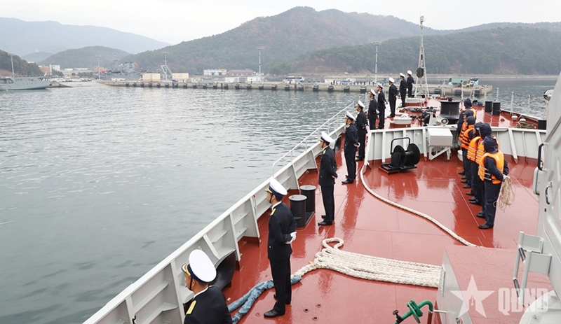 PANO - Frigate 015 - Tran Hung Dao of Brigade 162 under Naval Region 4 arrived at Jinhae Port on December 11, starting a courtesy visit to the Republic of Korea (RoK) aimed at strengthening friendship and cooperation between the two navies.